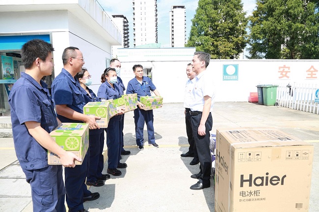為切實(shí)做好夏季防暑降溫工作,保障高溫期間全體職工的身體健康,確保生產(chǎn)經(jīng)營工作順利進(jìn)行,8月11日下午,安慶港華常務(wù)副總楊善俊、工會主席韓高中一行來到港華路加氣站、雙井街路段戶內(nèi)管外移作業(yè)現(xiàn)場及北部新城調(diào)峰站等處,看望慰問高溫下始終堅(jiān)守在一線崗位的燃?xì)夤ぷ髡?,并送去冷柜、飲用水和防暑降溫用品,把公司的關(guān)懷送到職工們的心坎里。