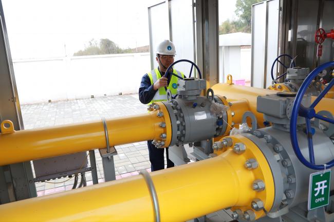 12時08分,置換作業(yè)開始。確定管道內氣體成分比例符合要求后,置換組緩慢開啟1號閥門,向管網(wǎng)內輸送天然氣,并由調度中心對管網(wǎng)內壓力情況跟進、監(jiān)測。正午時分,驕陽似火,檢測人員們一邊吃著盒飯一邊堅守施工現(xiàn)場觀測數(shù)據(jù)。終于,14時16分,現(xiàn)場調度的對講機內傳來放散塔檢測人員的聲音:“經(jīng)檢測,管網(wǎng)內燃氣含量已達99.7%,置換合格?!?