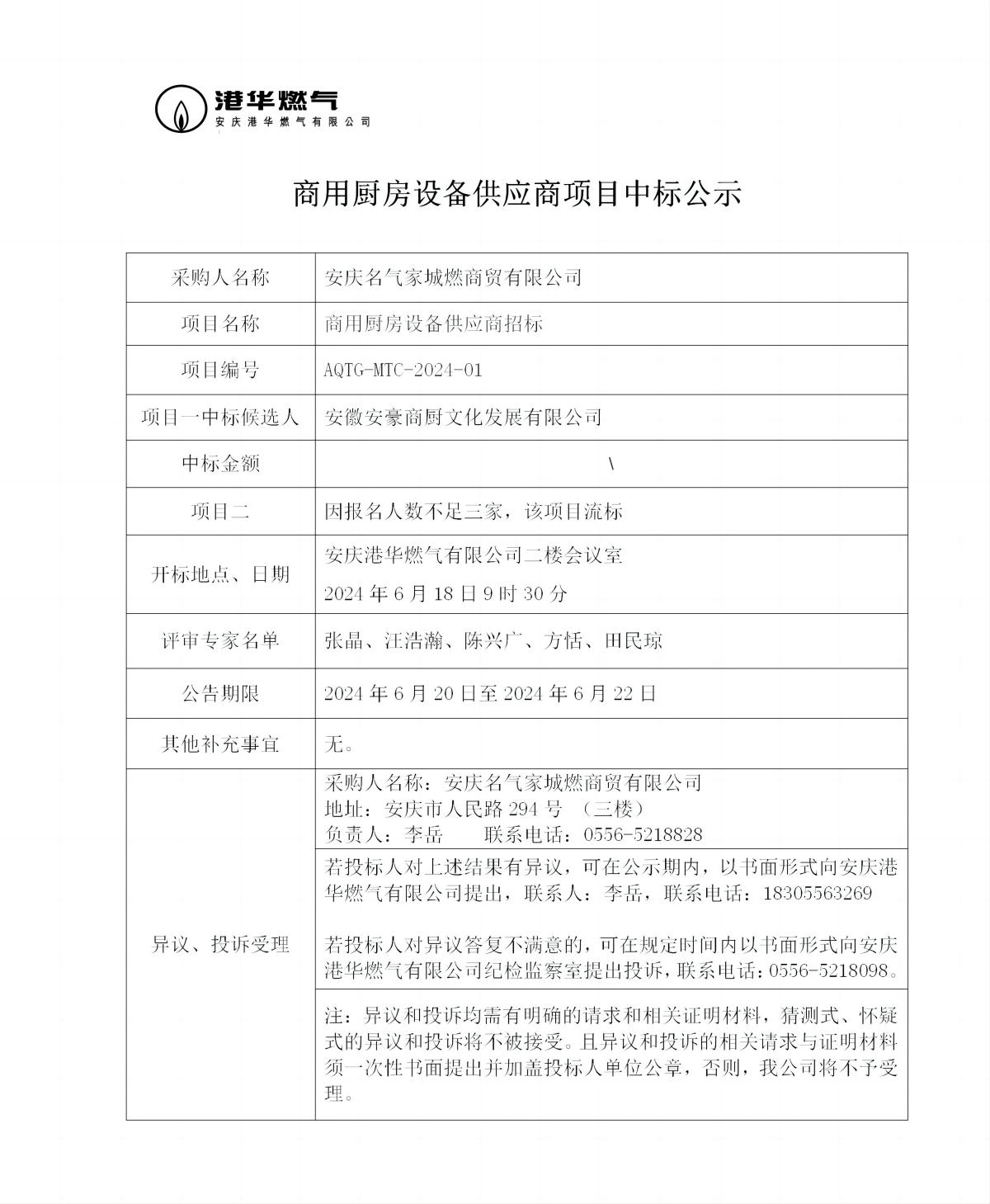 商用廚房設(shè)備供應(yīng)商項(xiàng)目中標(biāo)公示