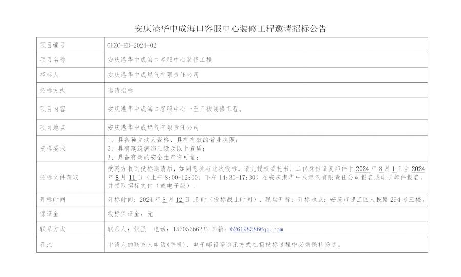 安慶港華中成??诳头行难b修工程邀請招標(biāo)公告
