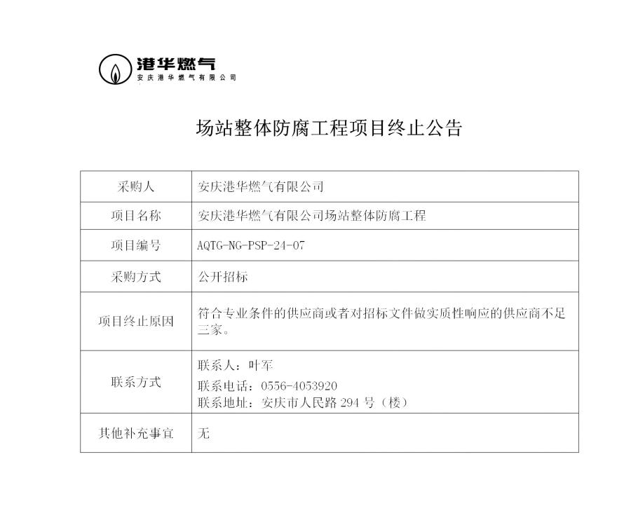 場(chǎng)站整體防腐工程項(xiàng)目終止公告