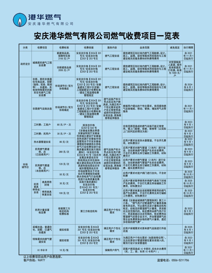 安慶港華燃?xì)庥邢薰臼召M項目一覽表(2025)