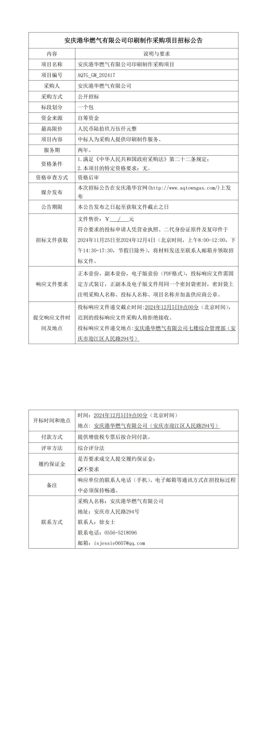 安慶港華燃?xì)庥邢薰居∷⒅谱鞑少忢?xiàng)目招標(biāo)公告