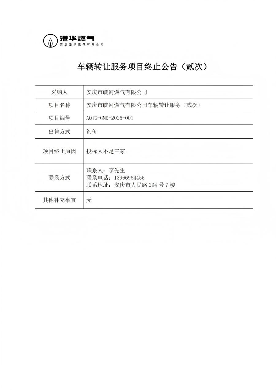 安慶市皖河燃氣有限公司車輛轉讓服務