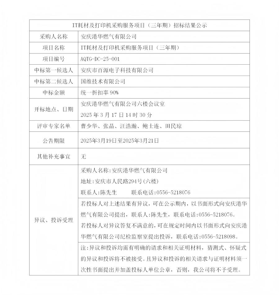 IT耗材及打印機(jī)采購服務(wù)項目(三年期)招標(biāo)結(jié)果公示