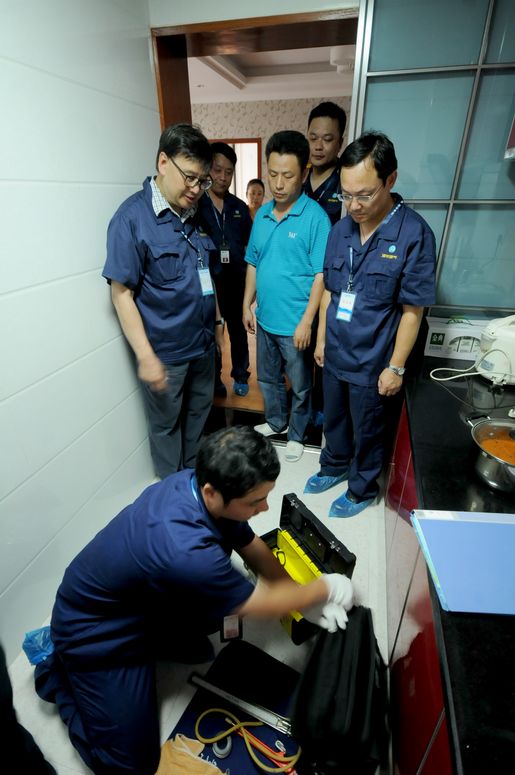 在安慶巡查的第三站——綠地迎江世紀(jì)城小區(qū),主要展示的是小區(qū)戶內(nèi)集中安檢。進(jìn)入小區(qū),映入眼簾的是一排排安檢宣傳、咨詢、安全燃?xì)饩哒故緟^(qū),宣傳展板向居民展示燃?xì)獍踩褂弥R、燃?xì)馐鹿示炯鞍踩細(xì)饩叩氖褂玫瘸WR,工作人員細(xì)致耐心的解答居民的咨詢,并發(fā)放《燃?xì)饪蛻舭踩脷馐謨浴?。陳總裁等集團(tuán)領(lǐng)導(dǎo)跟隨安檢員來到客戶家中,觀看戶內(nèi)安檢的每個環(huán)節(jié),當(dāng)安檢人員規(guī)范地完成整個安檢流程后,陳總裁給予了“很好,不亞于香港水平”的高度評價。