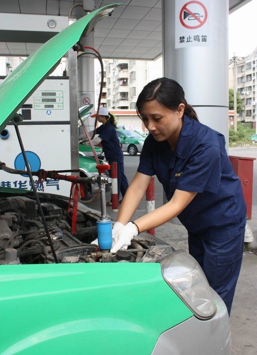我市出租車因車型原因,車用氣瓶容積相對其它城市小,天氣炎熱,出租車開啟空調(diào)后,用氣量明顯增加,加氣的次數(shù)也由平日的一天2次增加到一天3-4次。港華路加氣站也因臨近市區(qū),大部分車主習(xí)慣扎堆到這里加氣。另外由于出租車交接班的習(xí)慣,一般上午10:30-12:00,下午4:30-6:00加氣的車輛會明顯增加,成為加氣的高峰時段。針對這些情況,安慶港華高度重視,積極采取有效措施進(jìn)行疏導(dǎo)和分流,避免出現(xiàn)出租車加氣排長隊現(xiàn)象。